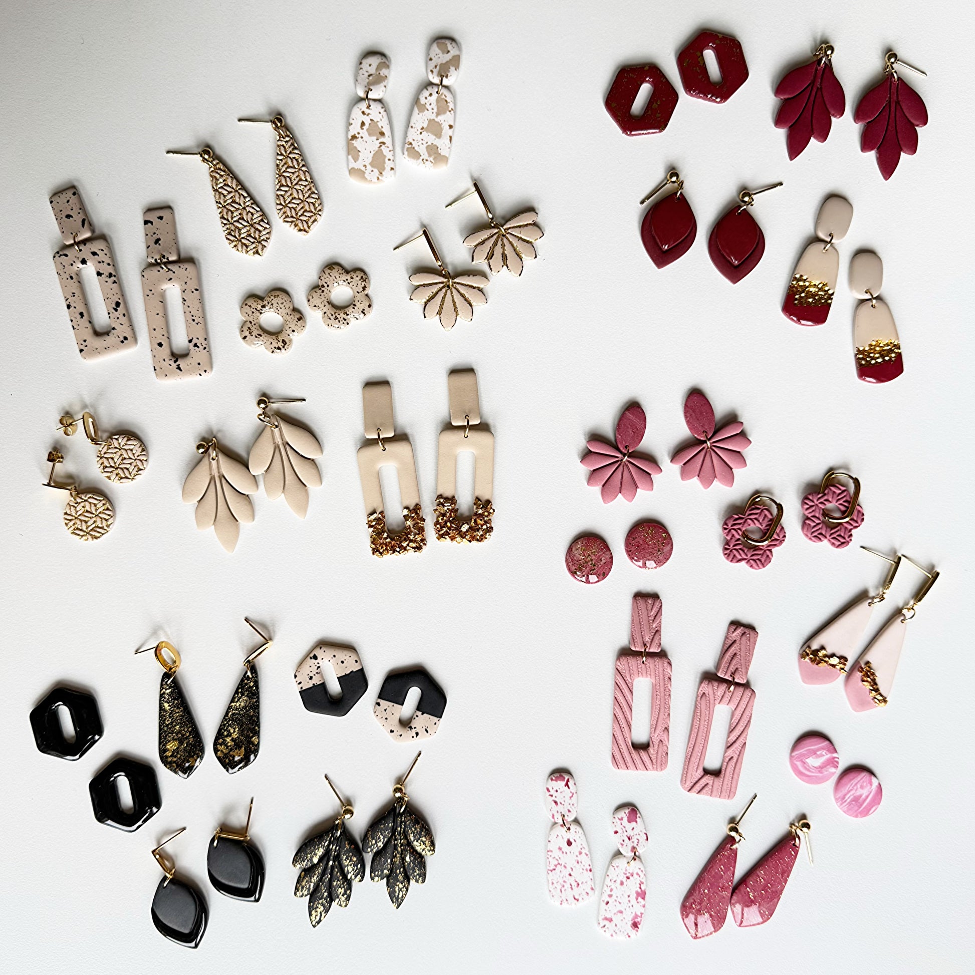 Während des Workshops lernst du unter anderem, Farben zu mischen, verschiedene Techniken anzuwenden (wie Terrazzo, Konfetti, Marmor, Farbe gegen Farbe usw.), Relief hinzuzufügen und deine Ohrringe zusammenzusetzen. Und das alles in deinem eigenen Stil. Die Möglichkeiten sind wirklich endlos.