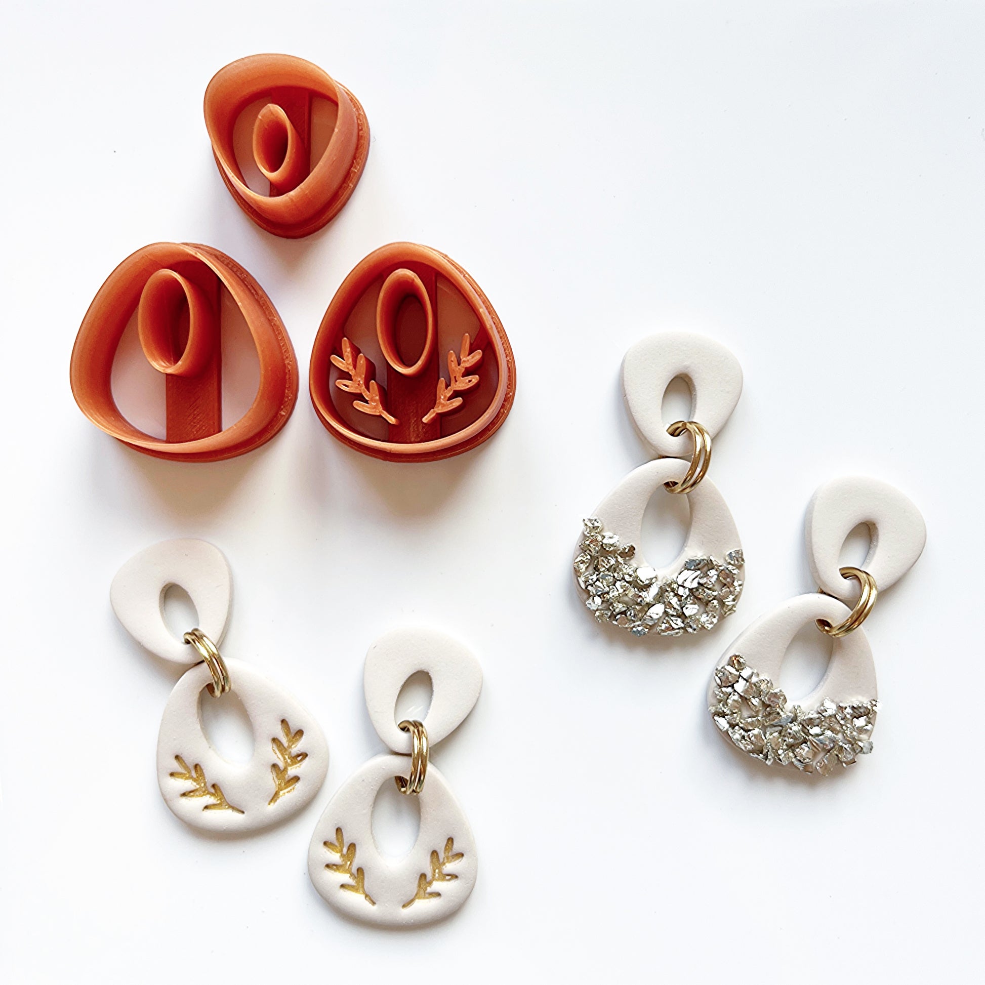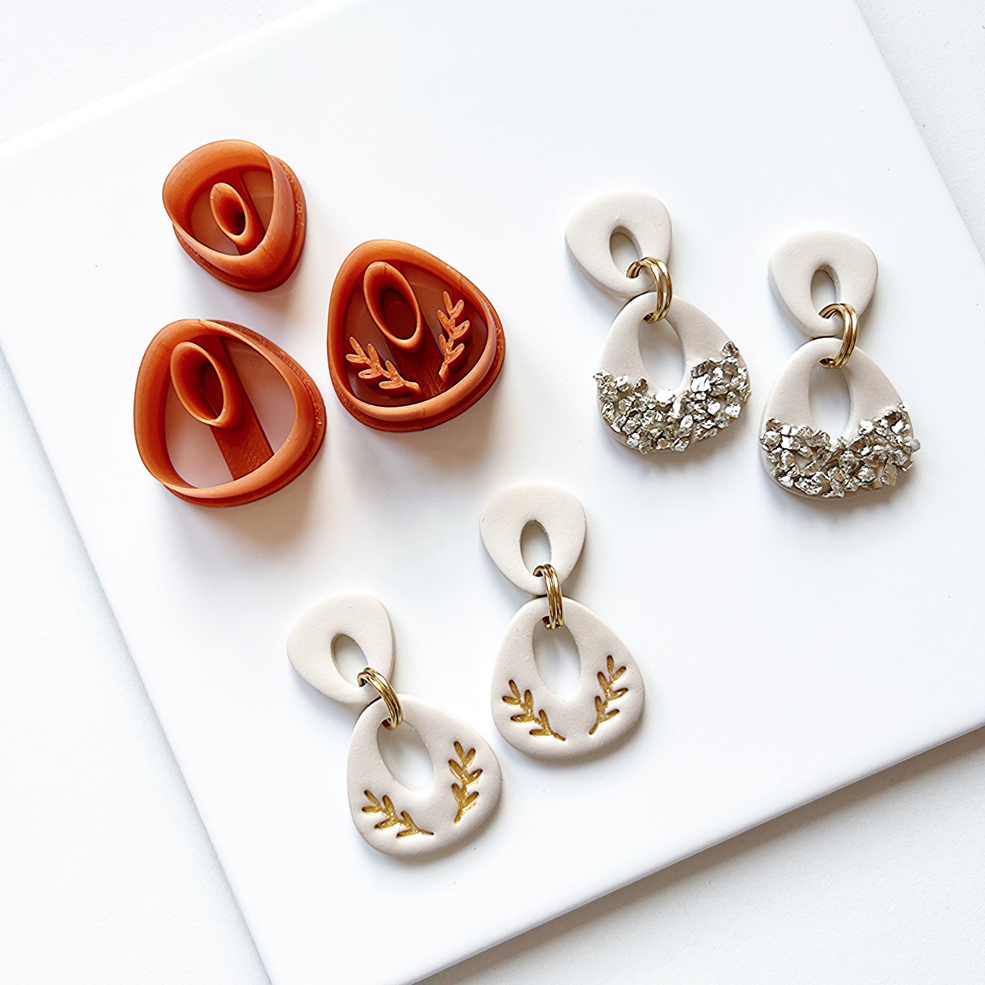 Gebruik jumpringen van 10 mm om de bovenste en onderste kleivorm met elkaar de verbinden.